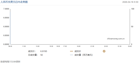 今日(4月16日),人民币兑美元中间价较前贬值34个基点,报6.8616。在岸市场人民币兑美元即期汇率开盘价报6.8185,其后人民币呈震荡走势。离岸市场人民币兑美元开盘价报6.8175。